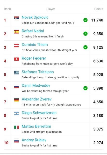 Továbbra is Novak Đoković vezeti a férfi teniszezők legfrissebb világranglistáját. A francia Roland Garros, és egyben a 20. Grand Slam sikerét arató spanyol Rafael Nadal a második, míg az osztrák Dominic Thiem a harmadik. A legjobb magyarországi teniszező Fucsovics Márton, ő az ötvenedik jelenleg.